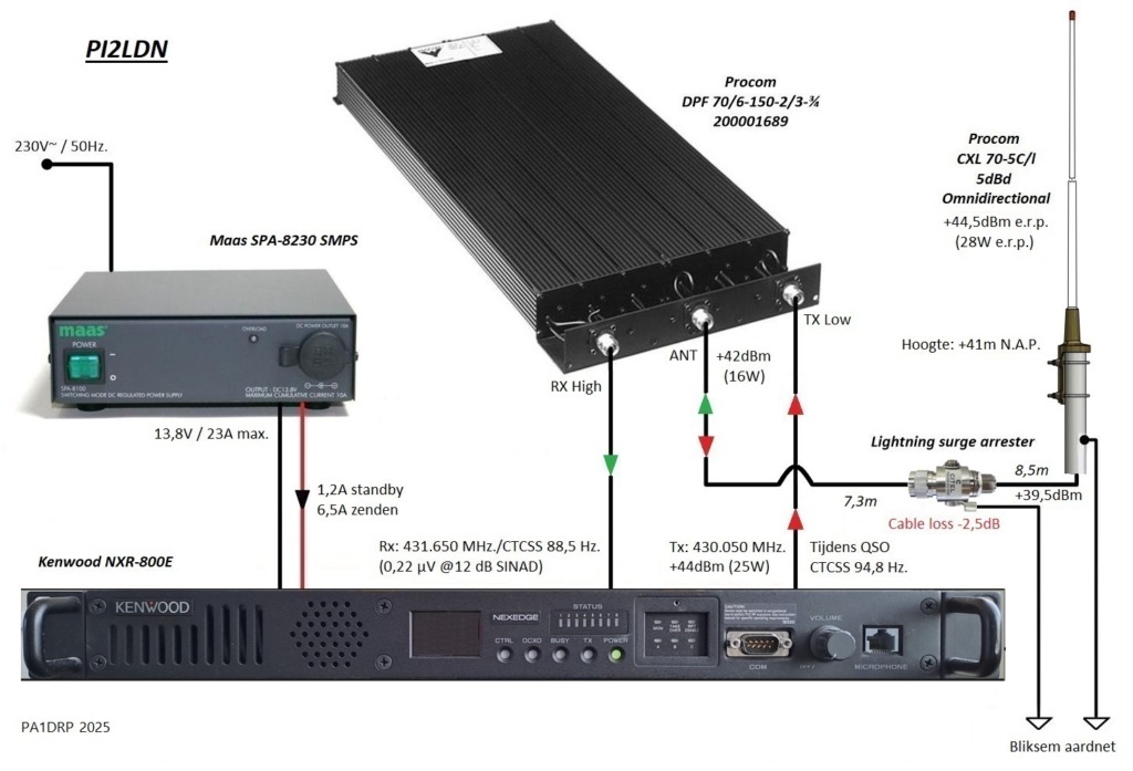 Bijgaand een schema van de opstelling in Leiden (credits: Lex – PA1DRP).
